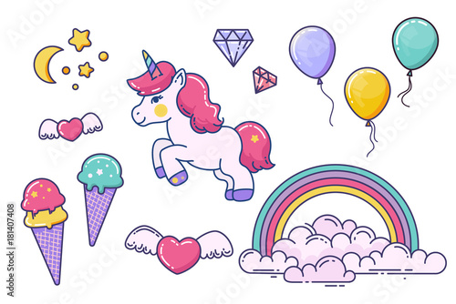 © kukies, Naklejka premium Unicorn and fairy elements isolated on white