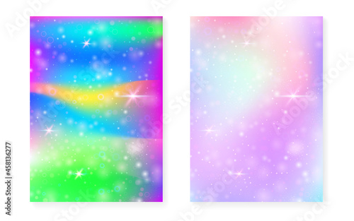 © Holo Art, Fototapeta premium Unicorn background with kawaii magic gradient. Princess rainbow hologram.