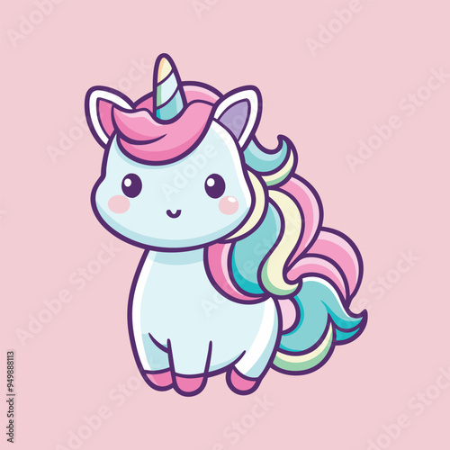 © Tarek, Naklejka premium Unicorn Cartoon sytle vector for Kids Book design on Pink Background