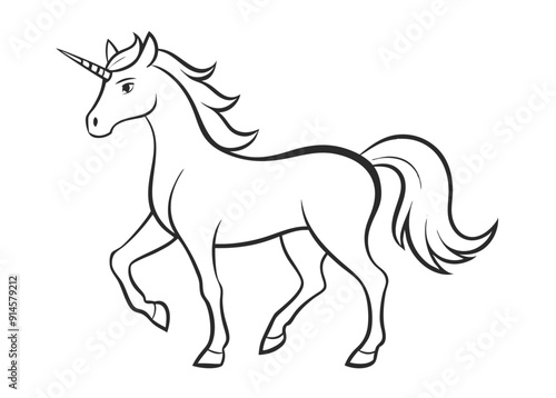 © Tanvir, Fototapeta premium unicorn coloring page line art silhouette