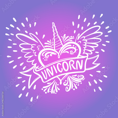 © Anna, Fototapeta premium unicorn heart with wings. Logo vector Illustration