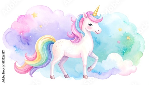 © Weli, Fototapeta premium Unicorn on Cloud Watercolor Illustration