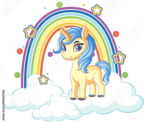 © blueringmedia, Obraz premium Unicorn on cloud with rainbow