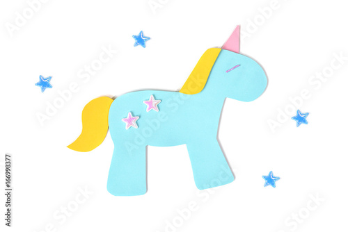 © niradj, Fototapeta premium Unicorn paper cut on white background - isolated