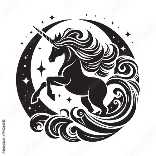 © T-Shirt AF, Obraz premium unicorn silhouette vector set