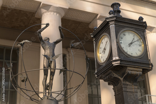 Fototapeta premium Union Station clock and sculpture: Monument to Multiculturalism by Francesco...