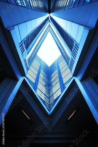 © Boris, Fototapeta premium Unique architectural perspective showcases blue tones and geomet
