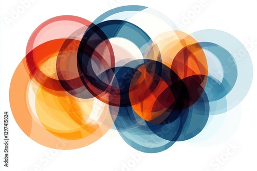 © Azadart, Obraz premium Unique arrangement of black, white, and red circular bands lying on a light surface during a creative workshop or design session