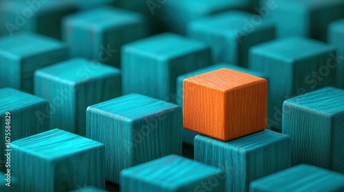 © Pawadee, Obraz premium Unique Block Standing Out from the Crowd.