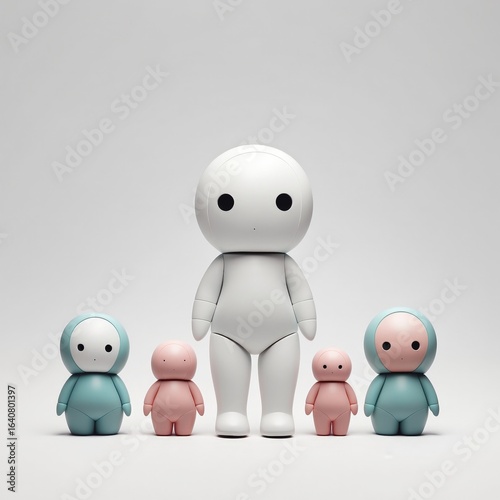 © Anna, Fototapeta premium Unique collection of colorful doll figures in a minimalist setting with distinct designs and playful expressions Generative AI