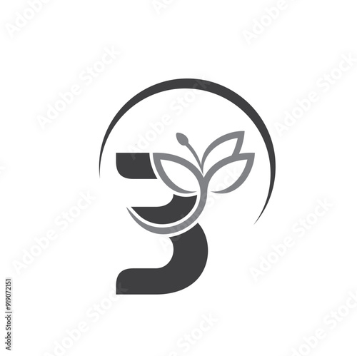 Fototapeta premium unique combination of number three and leaves.