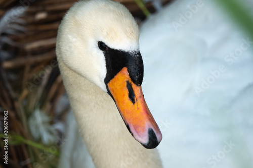 Fototapeta premium Unique elegance and beauty of swams drifting on the Upper Zurich Lake waters (Obersee), near Rapperswil, Switzerland