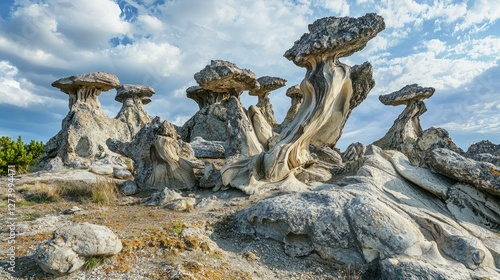 Obraz premium Unique Geological Formations with Dramatic Sky and Natural Landscape
