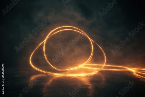 © YouraPechkin, Obraz premium Unique glowing trails form abstract shapes in dark setting with misty background