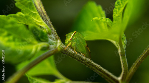 © Alex, Naklejka premium unique grasshopper among lush mint, summer day