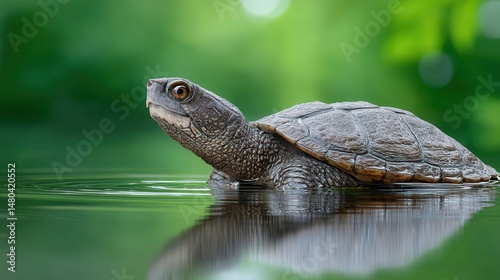 © Nattapun, Obraz premium Unique musk turtle floating in a serene ocean pond realistic high-resolution nature scene