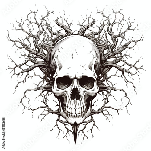 Obraz premium Unique Skull with Branches Tattoo Art Design Vector for Creative Projects