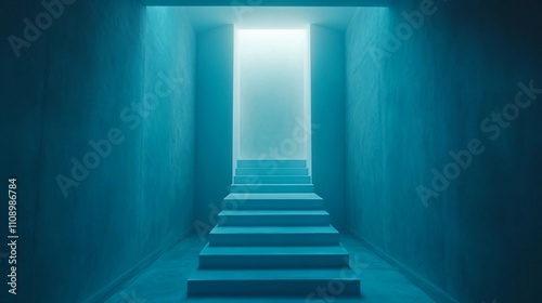 Fototapeta premium Unique stairway leading to a glowing doorway in a serene and minimalist space