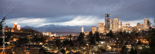 Obraz premium Unique Vantage Point Seattle Washington Downtown City Skyline Puget Sound