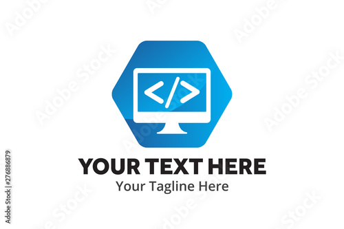 Fototapeta premium unique web developer simple logo creative design in flat style with color ....