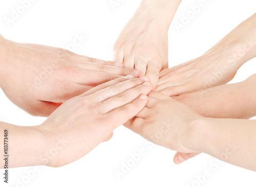© Pakhnyushchyy, Fototapeta premium United hands on white background