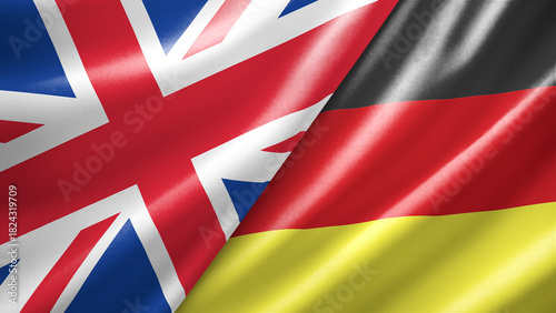 © Nina, Fototapeta premium United Kingdom UK and Germany two national flags filling the entire frame, close-up view, edge-to-edge composition