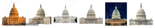 Obraz premium United States Capitol Building set including day, sunset, and night views isolated. Symbol of American government and democracy.
