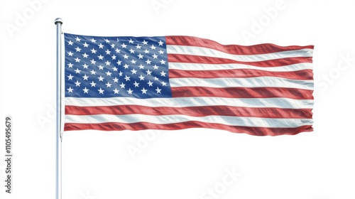 © Shozib, Fototapeta premium United states flag waving on white background: star spangled banner flies proudly