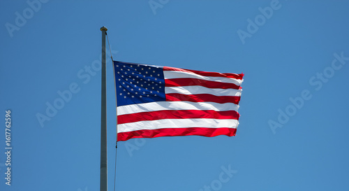 Fototapeta premium United States Flag Waving Proudly Against a Brilliant Blue Sky Backdrop