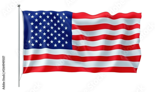 © Vergiliy, Fototapeta premium United States flag waving, red and white stripes, blue field with white stars, symbol of patriotism and national pride, isolated on transparent background, png