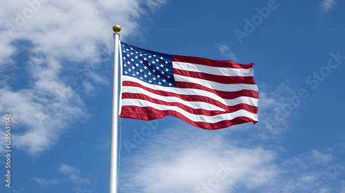 Fototapeta premium United States Flag Waving Under a Clear Blue Sky on a Sunny Day : Generative AI
