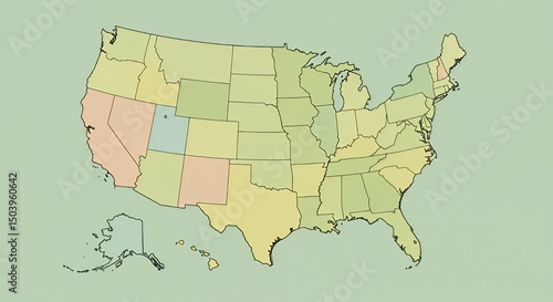 Obraz premium United States Map: Color-Coded States