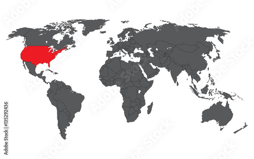 Fototapeta premium United States of America red on gray world map vector