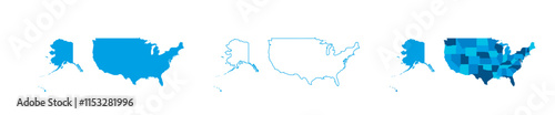 Fototapeta premium United States of America set of three maps - solid map, outline map and map...