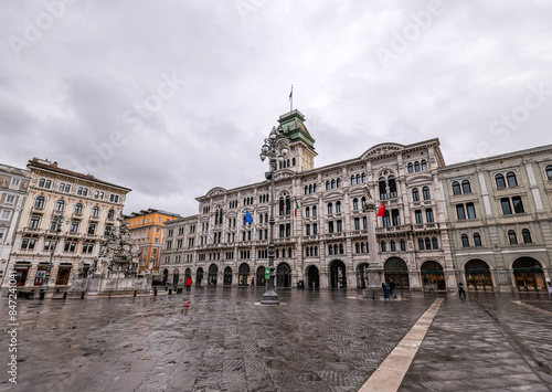 Fototapeta premium Unity of Italy Square in Trieste, Italy, Canal grande in Trieste city center,...