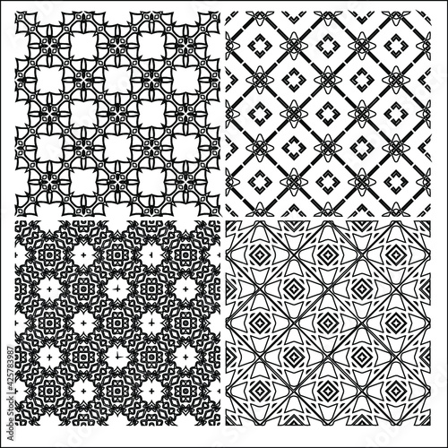 Fototapeta premium 4 Universal different geometric seamless patterns. Endless vector texture can be used for wrapping wallpaper, pattern fills, web background,surface textures. Set of monochrome ornaments