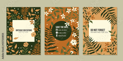 Fototapeta premium Universal hand drawn floral templates in warm colors perfect for an autumn or...
