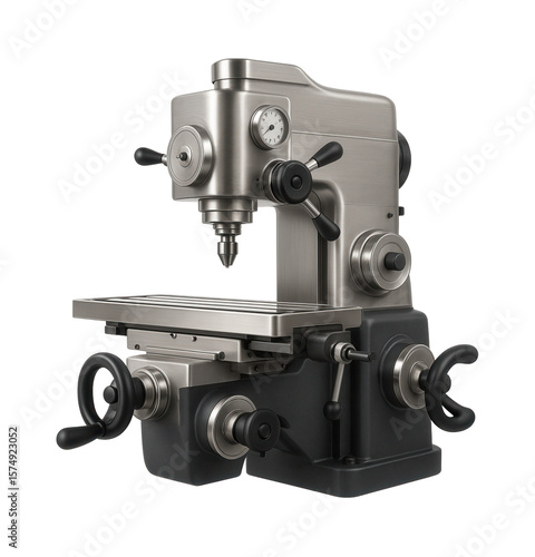 Naklejka premium Universal milling machine with an adjustable knee and manual controls for...
