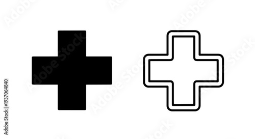 Obraz premium Universal Plus Sign Icon Set: Add or Medical Cross Symbol Vector Graphic