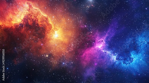 Naklejka premium Universe with galaxy, stars and nebulas. Supernova background wallpaper design. Ai generative