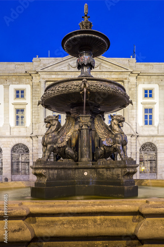 Fototapeta premium University Gomes Teixeira Square Fountain, Porto night cityscape