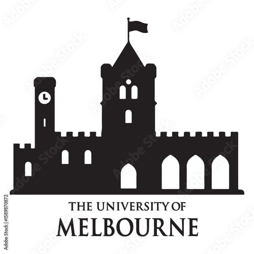 Obraz premium University of Melbourne Silhouette with Skyline and Gothic Architecture
