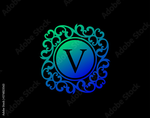 Obraz premium Uniwue V Letter Calligraphic Logo. Luxury V Swirl Logo Icon perfect for salon, yoga, restaurant, boutique and letter stamp.