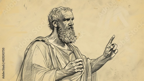 © T Studio, Fototapeta premium 'Unknown God' Sermon by Paul at Areopagus in Athens, Biblical Illustration, Beige Background, Copyspace