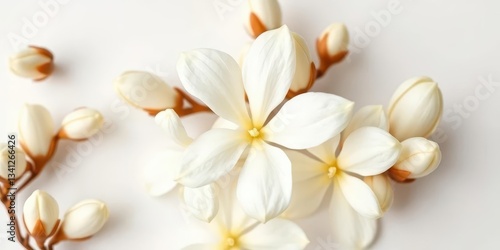 © Katherina, Fototapeta premium Unopened jasmine buds, creamy white, delicate texture, pristine white background, flower, floral