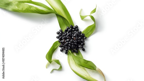 © The 2R Artificiality, Naklejka premium Unprocessed black corn on a stark white backdrop, ideal for culinary or menu presentation