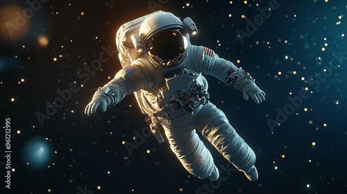 © Muhammad, Fototapeta premium unrecognizable astronaut in protective Extravehicular Mobility Unit with backpack and reflecting helmet****
