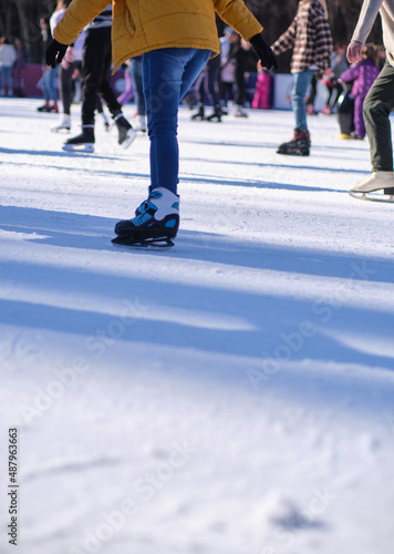 Fototapeta premium Unrecognizable people skating on ice skating rink