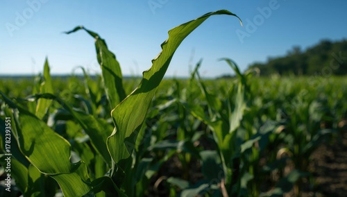 © vxnaghiyev, Obraz premium Unripe corn leaves in a field, seasonal change