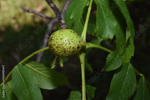 Obraz premium unripe walnuts on tree